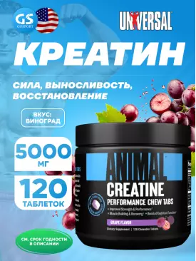 Микронизированный креатин Animal Creatine Chews 120 таблеток, Виноград UNIVERSAL NUTRITION Подписка на товар Артикул 40439