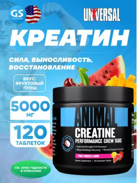 Микронизированный креатин Animal Creatine Chews 120 таблеток, Фруктовый пунш UNIVERSAL NUTRITION Подписка на товар Артикул 40438