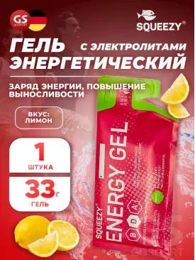 250 q 250 q 000 Энергетический гель ENERGY GEL no caffeine 33 г саше, Лимон SQUEEZY В корзину Артикул 541