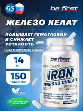 -18% 690 q 841 q 841 q 000 Минералы Iron bisglycinate chelate (железа хелат) 150 таблеток Be First В корзину Артикул 31486
