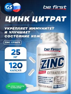 -18% 570 q 695 q 695 q 000 Цинк Zinc citrate (цинка цитрат) 120 капсул Be First В корзину Артикул 30082