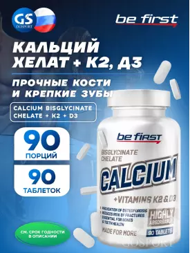 Кальций & магний Calcium bisglycinate chelate + K2 + D3 (кальций бисглицинат хелат + К2 + Д3) 90 таблеток Be First Подписка на товар Артикул 35404