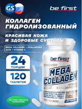 -18% 940 q 1 146 q 1 146 q 000 COLLAGEN Mega Collagen + hyaluronic acid + vitamin C (коллаген с витамином С и гиалуроновой кислотой) 120 таблеток Be First В корзину Артикул 31490