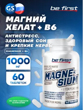 -18% 690 q 841 q 841 q 000 Магний Магний хелат бисглицинат + B6 60 таблеток Be First В корзину Артикул 34090