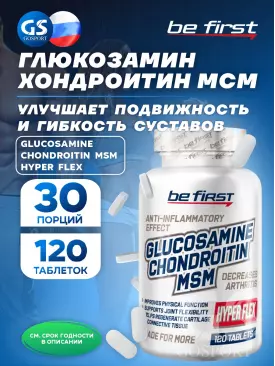 -18% 1 690 q 2 061 q 2 061 q 000 Суставы, связки Glucosamine Chondroitin MSM Hyper Flex (глюкозамин хондроитин МСМ Гипер Флекс) 120 таблеток Be First В корзину Артикул 31242