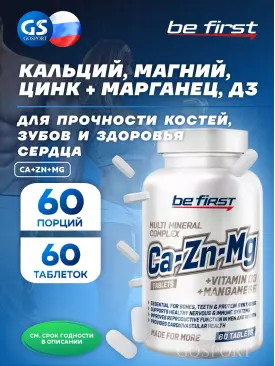 Минералы Ca+Zn+Mg (кальций+магний+цинк) 60 таблеток, Нейтральный Be First Подписка на товар Артикул 34089