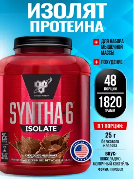 -12% 5 102 q 5 797 q 5 797 q 000 Изолят протеина SYNTHA-6 ISOLATE 912 г / 2.01 LB, Шоколадно-молочный коктейль BSN В корзину Артикул 20329