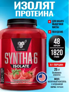 -12% 5 102 q 5 797 q 5 797 q 000 Изолят протеина SYNTHA-6 ISOLATE 912 г / 2.01 LB, Молочный коктейль с клубникой BSN В корзину Артикул 20330