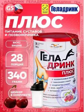 Суставы, связки Плюс (Geladrink Plus) + Шейкер 340 г + шейкер, Вишня ГЕЛАДРИНК Подписка на товар Артикул 39270