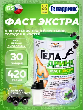 Суставы, связки Фаст Экстра 420 г + шейкер, Черная смородина ГЕЛАДРИНК Подписка на товар Артикул 39288