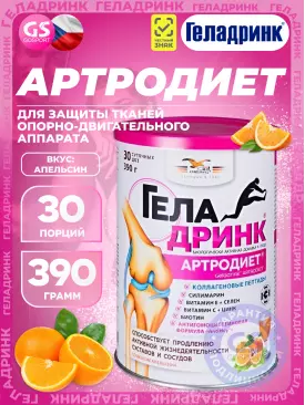 -20% 3 643 q 4 554 q 4 554 q 000 Суставы, связки Артродиет (Geladrink Artrodiet) 390 г, Апельсин ГЕЛАДРИНК В корзину Артикул 18375
