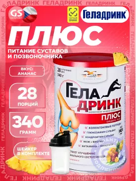 Суставы, связки Плюс (Geladrink Plus) + Шейкер 340 г + шейкер, Ананас ГЕЛАДРИНК Подписка на товар Артикул 39269