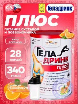 Суставы, связки Плюс (Geladrink Plus) + Шейкер 340 г + шейкер, Апельсин ГЕЛАДРИНК Подписка на товар Артикул 39268