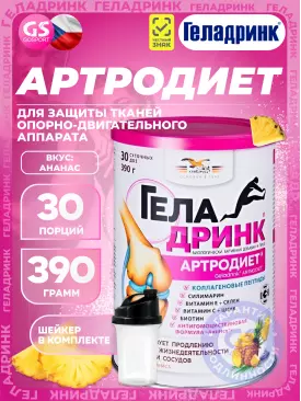 Суставы, связки Артродиет (Geladrink Artrodiet) + Шейкер 390 г + шейкер, Ананас ГЕЛАДРИНК Подписка на товар Артикул 39282