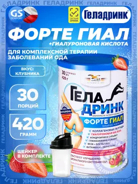 Суставы, связки ФОРТЕ (Geladrink Forte) ГИАЛ + Шейкер 420 г + шейкер, Клубника ГЕЛАДРИНК Подписка на товар Артикул 39276