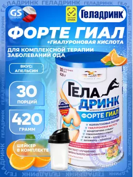 Суставы, связки ФОРТЕ (Geladrink Forte) ГИАЛ + Шейкер 420 г + шейкер, Апельсин ГЕЛАДРИНК Подписка на товар Артикул 39272