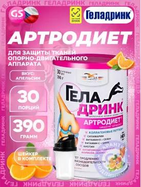 Суставы, связки Артродиет (Geladrink Artrodiet) + Шейкер 390 г + шейкер, Апельсин ГЕЛАДРИНК Подписка на товар Артикул 39283