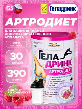 Суставы, связки Артродиет (Geladrink Artrodiet) + Шейкер 390 г + шейкер, Малина ГЕЛАДРИНК Подписка на товар Артикул 39284