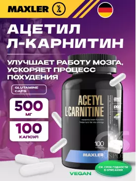 -10% 1 890 q 2 100 q 2 100 q 000 L-Карнитин Acetyl L-Carnitine 100 капсул MAXLER В корзину Артикул 18065