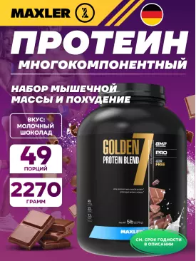 -10% 6 550 q 7 278 q 7 278 q 000 Комплексный протеин Golden 7 Protein Blend 2270 г, Молочный шоколад MAXLER Ещё 3 В корзину Артикул 37832