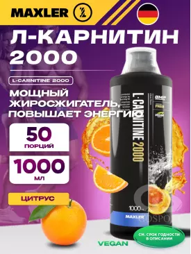 -10% 2 360 q 2 622 q 2 622 q 000 L-Карнитин L-Carnitine 2000 1000 мл, Цитрус MAXLER Ещё 3 В корзину Артикул 20580