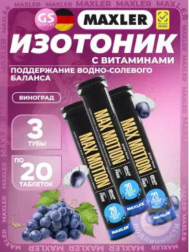 Изотоники в шипучках Max Motion Effervescent 3х20 шипучек, Виноград MAXLER Подписка на товар Артикул 39966