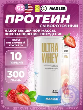 -10% 1 440 q 1 600 q 1 600 q 000 Сывороточный протеин Ultra Whey 300 г, Клубничный коктель MAXLER В корзину Артикул 35146