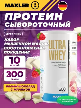 Сывороточный протеин Ultra Whey 300 г, Белый шоколад с малиной MAXLER Подписка на товар Артикул 36195