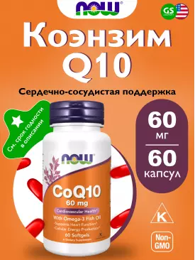 Антиоксиданты, Q10 CoQ10 60 mg + Omega-3 60 гелевые капсулы NOW FOODS Подписка на товар Артикул 20610