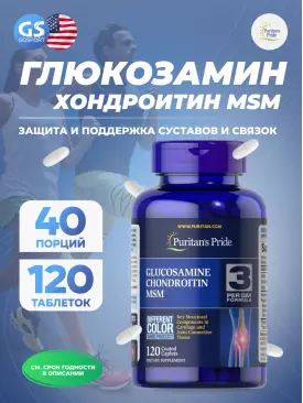 Суставы, связки Glucosamine, Chondroitin & MSM 120 таблеток Puritan's Pride Подписка на товар Артикул 41095