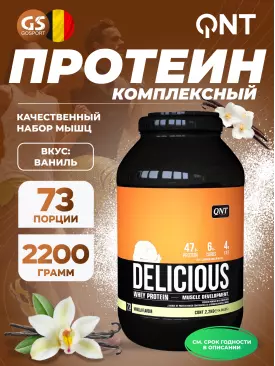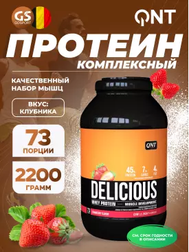 Комплексный протеин DELICIOUS WHEY PROTEIN POWDER 2200 г, Клубника QNT Подписка на товар Артикул 19859