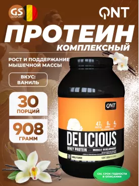 -10% 5 261 q 5 846 q 5 846 q 000 Комплексный протеин DELICIOUS WHEY PROTEIN POWDER 908 г, Клубника QNT В корзину Артикул 19857