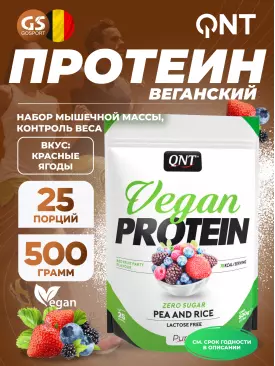 Протеин для вегетарианцев Vegan Protein Zero Sugar 500 г, Красные ягоды QNT Подписка на товар Артикул 19889