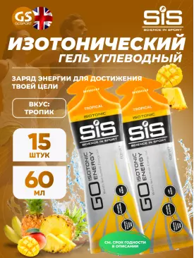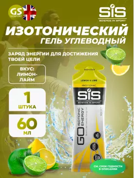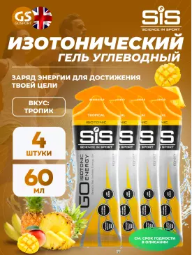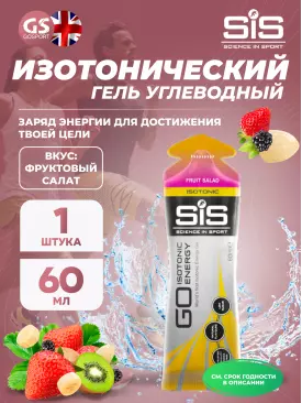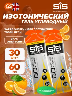 1. GO Isotonic Energy Gel от SiS – гель на основе углеводов обеспечивает организм необходимой ему энергией во время продолжительных тренировок, либо перед подготовкой к соревнованиям. Благодаря удобной упаковке и консистенции геля, принимать его можно не запивая водой. В одной упаковке содержится 22 грамма легко усваиваемых углеводов.