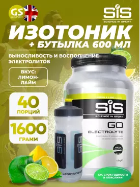 6 110 q 6 110 q 000 Изотоники в порошке GO Electrolyte + Бутылочка прозрачная Лимон-лайм №1 SCIENCE IN SPORT (SiS) В корзину Артикул 34816