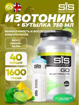 6 110 q 6 110 q 000 Изотоники в порошке GO Electrolyte + Бутылочка синяя Лимон-лайм №4 SCIENCE IN SPORT (SiS) В корзину Артикул 34819