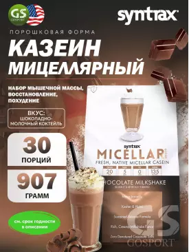 -12% 2 774 q 3 153 q 3 153 q 000 Казеин Micellar Creme 907 г, Молочный коктейль с клубникой SYNTRAX В корзину Артикул 20712