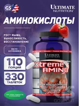 Аминокислотны Xtreme Amino Super 330 жевательных таблеток, Клубника Ultimate Nutrition Подписка на товар Артикул 35493