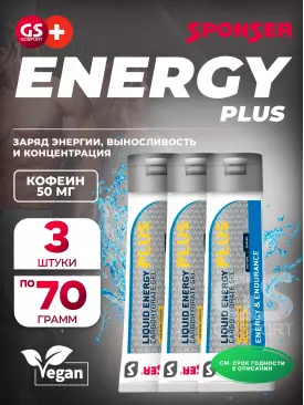 1 641 q 1 641 q 000 Энергетический гель LIQUID ENERGY PLUS 50mg caffeine 3 тюбика x 70 г, Карамель SPONSER В корзину Артикул 28534