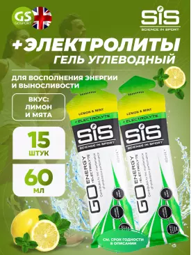 -10% 5 130 q 5 700 q 5 700 q 000 Энергетический гель Go Energy + Electrolyte Gels 15 x 60 мл, Лимон-Мята SCIENCE IN SPORT (SiS) В корзину Артикул 39944