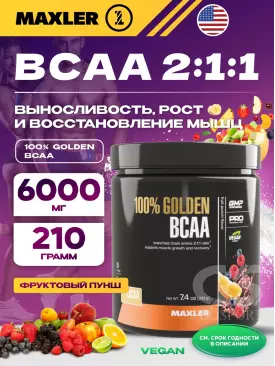 -10% 1 390 q 1 544 q 1 544 q 000 ВСАА 100% Golden BCAA 210 г, Фруктовый пунш MAXLER (USA) В корзину Артикул 30045