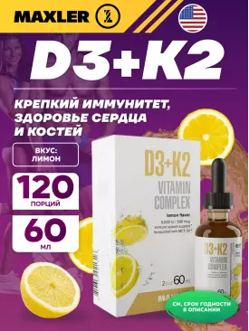 -14% 1 420 q 1 651 q 1 651 q 000 Витамин D D3+K2 Vitamin Complex drops 60 мл, Лимон MAXLER (USA) В корзину Артикул 39931