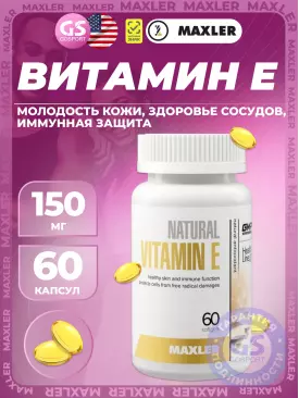 -10% 1 020 q 1 133 q 1 133 q 000 Витамин Е Vitamin E 60 софтгель капсул MAXLER В корзину Артикул 18112