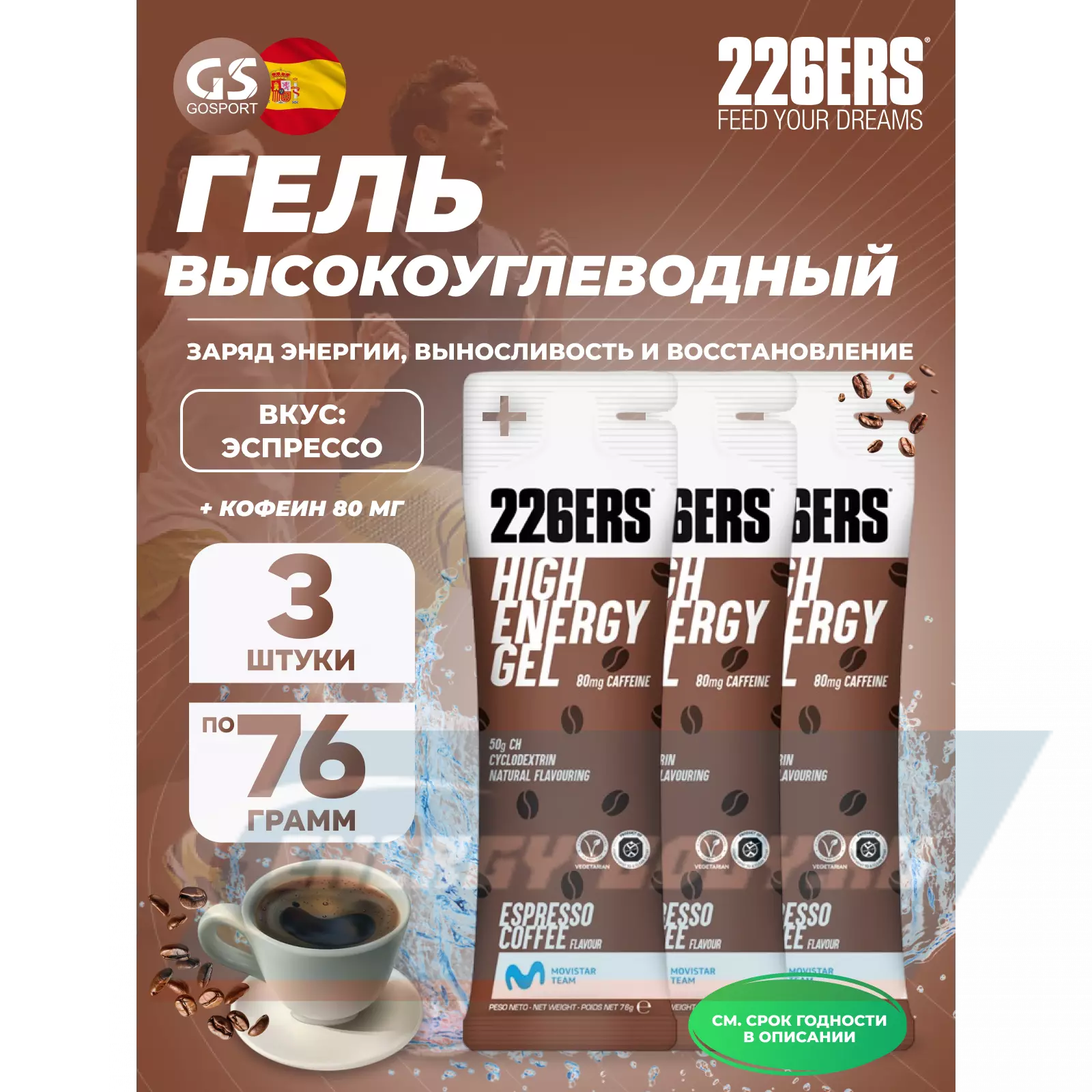 226ERS High Energy Gel + caffeine 80 mg 3 x 76 г, Эспрессо — Заряд энергии и повышение выносливости