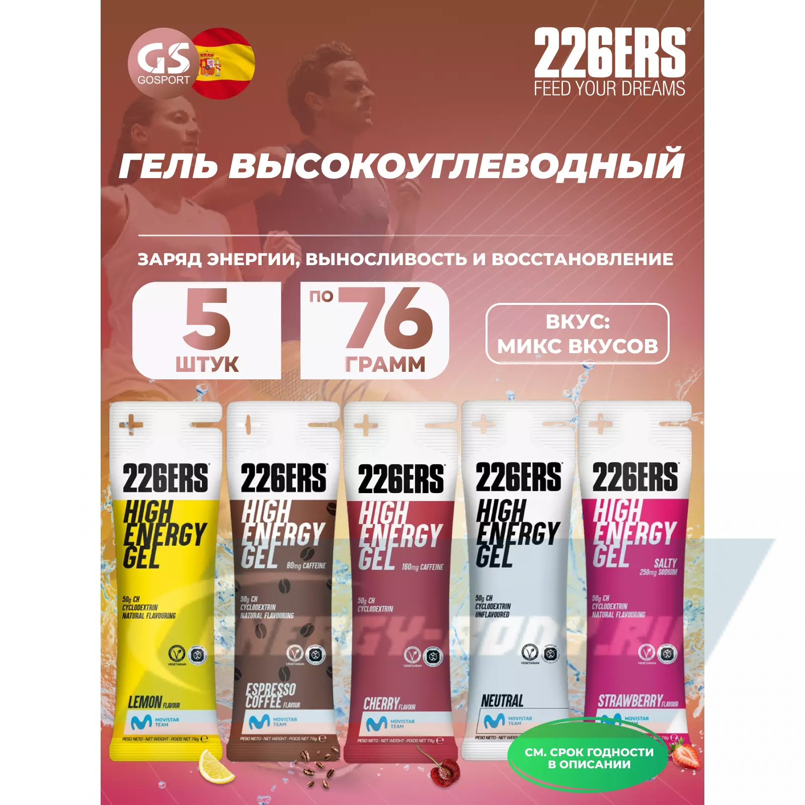 226ERS High Energy Gel 5 x 76 г, Микс №10 — Заряд энергии, выносливость и восстановление