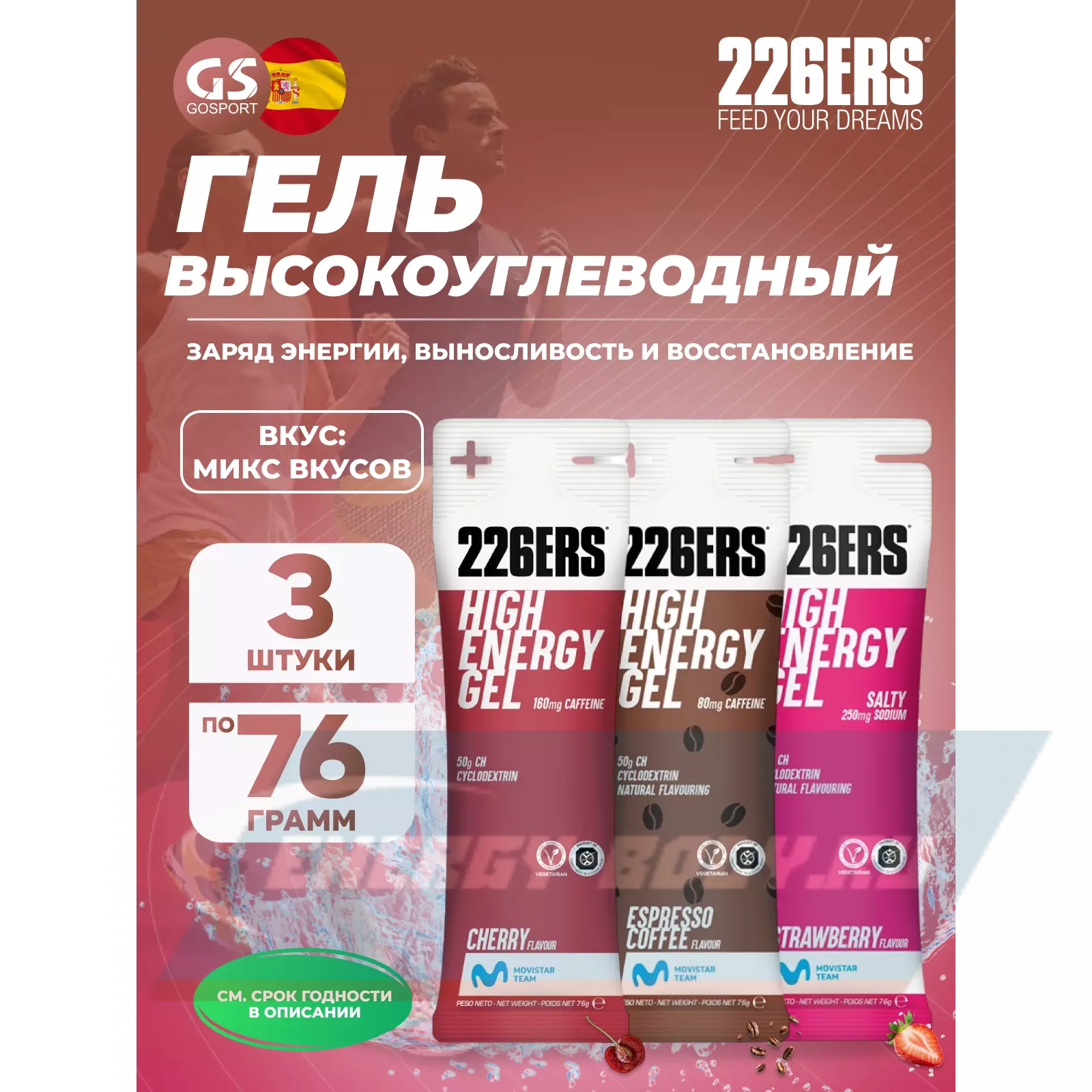 226ERS High Energy Gel + sodium 250 mg 3 x 76 г, Микс №5 — Заряд энергии, выносливость и восстановление