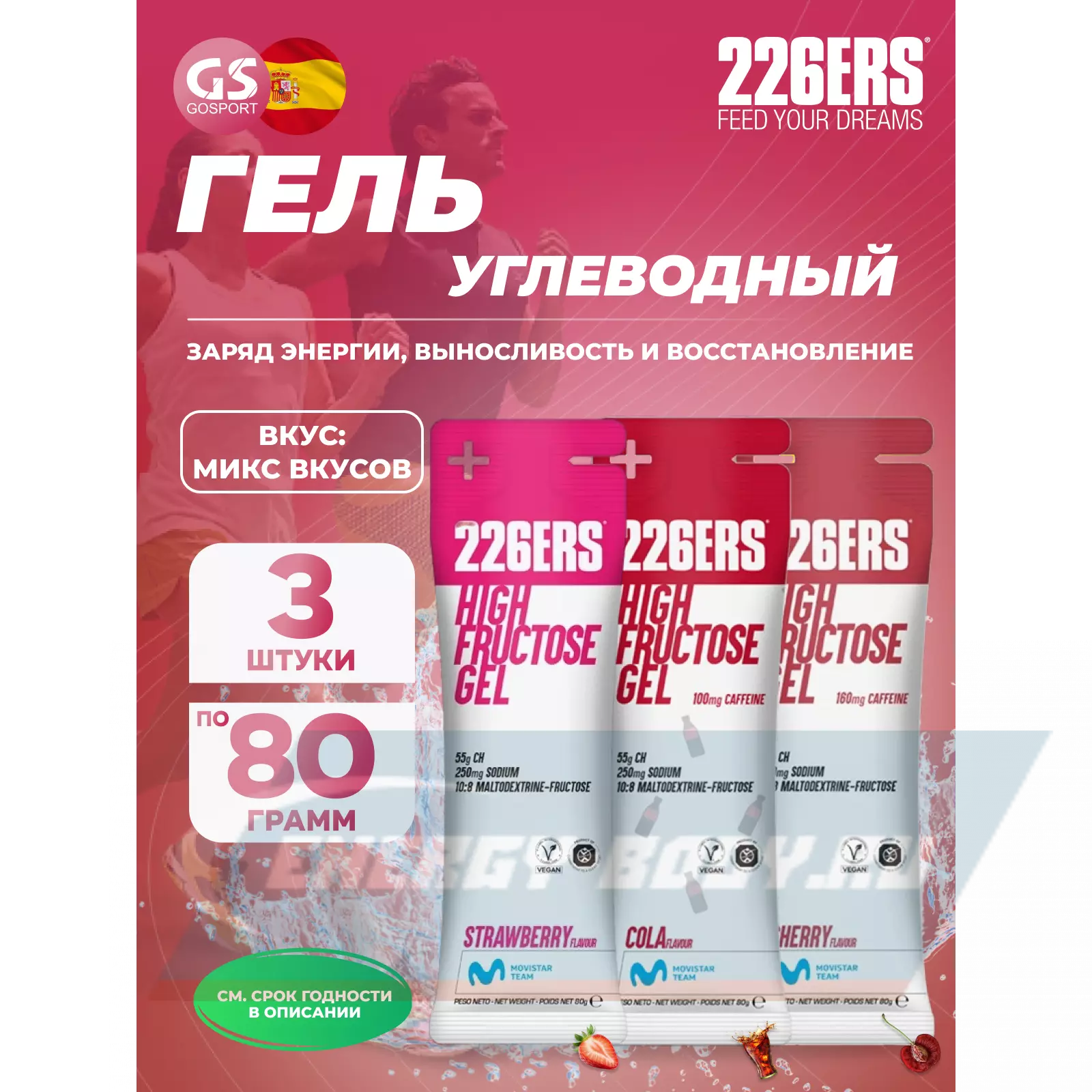226ERS High Fructose Gel 250 mg 3 x 80 г, Микс №3 — Заряд энергии, выносливость и восстановление