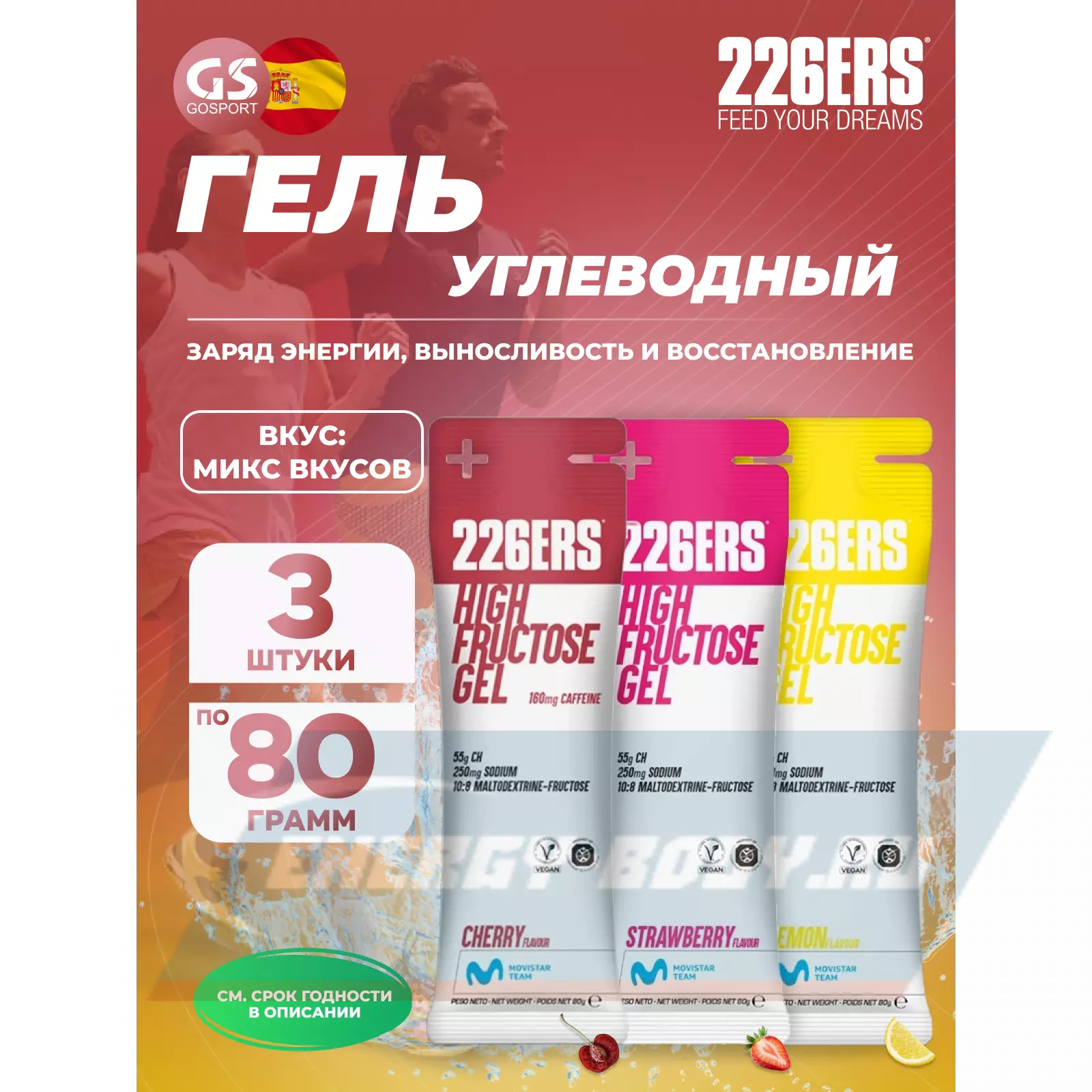 226ERS High Fructose Gel 250 mg 3 x 80 г, Микс №4 — Заряд энергии, выносливость и восстановление