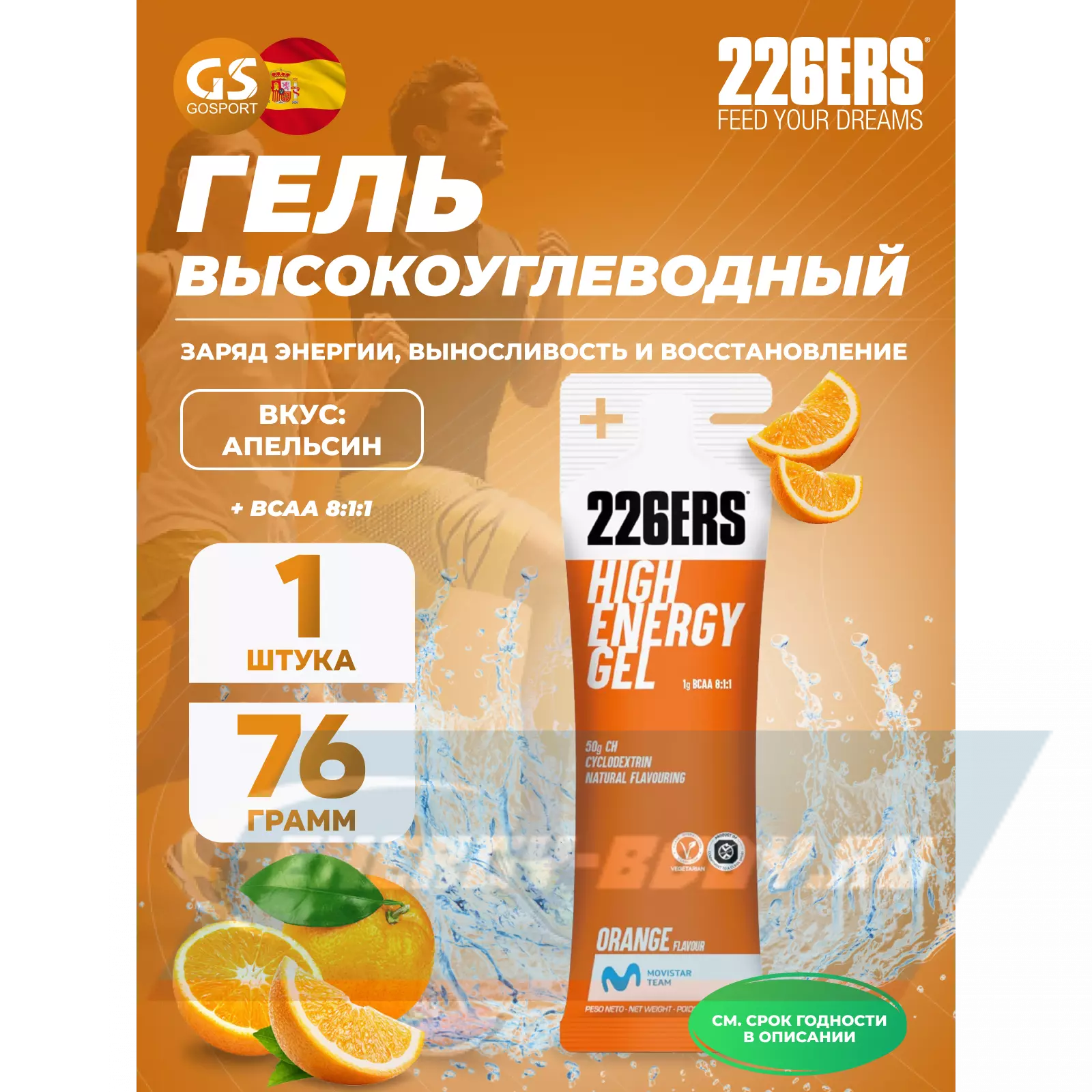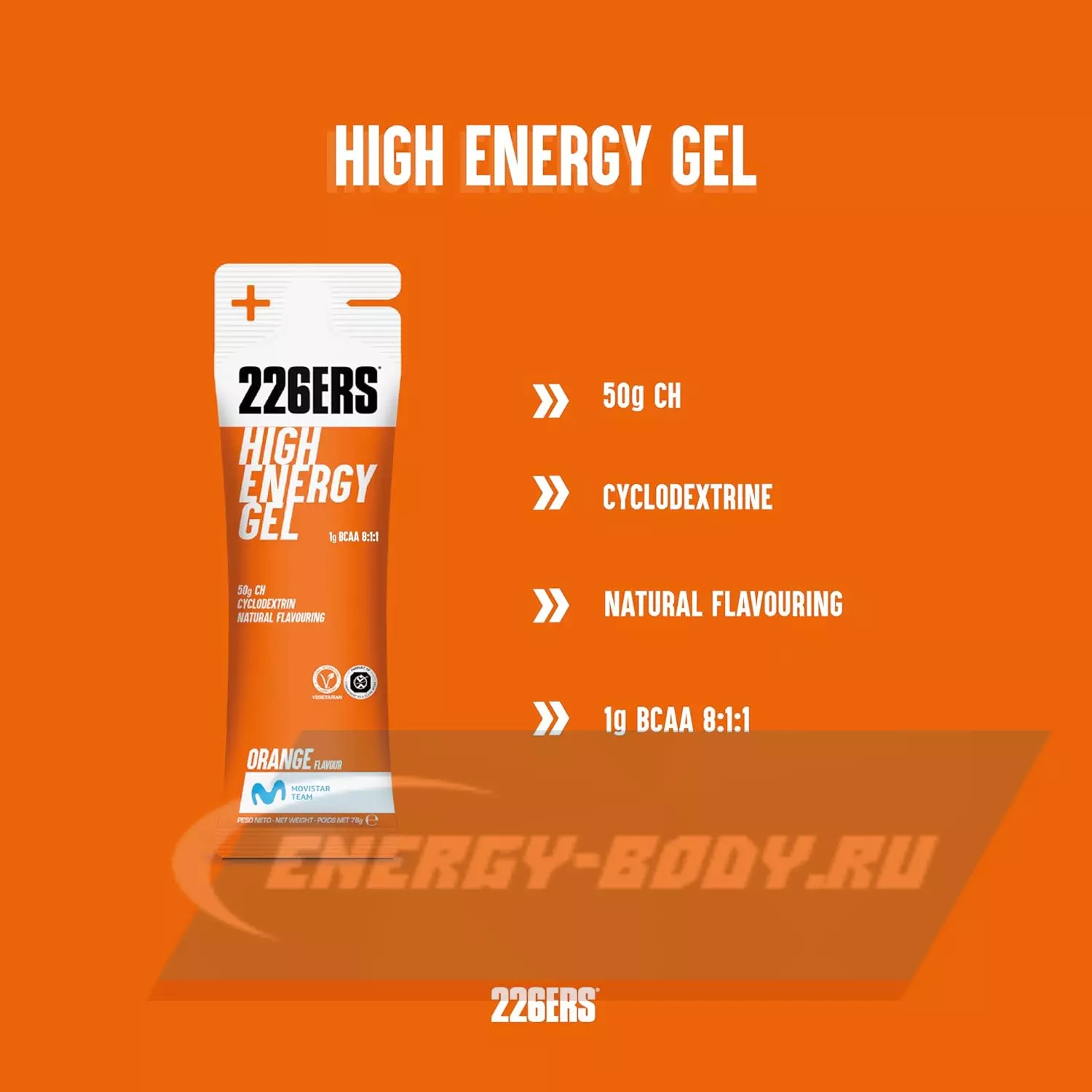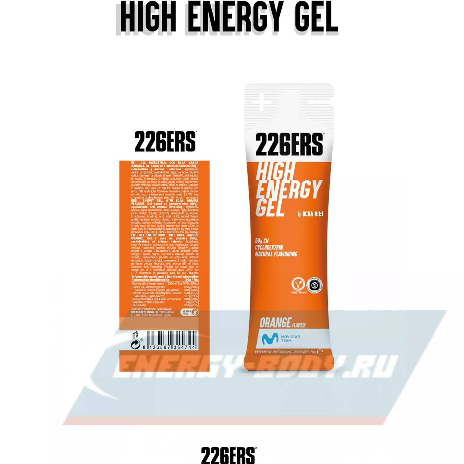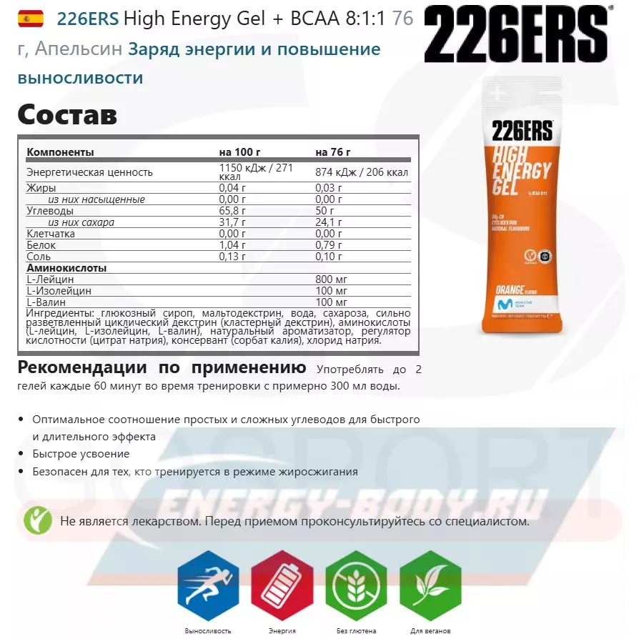 226ERS High Energy Gel + BCAA 8:1:1 76 г, Апельсин — Заряд энергии и повышение выносливости