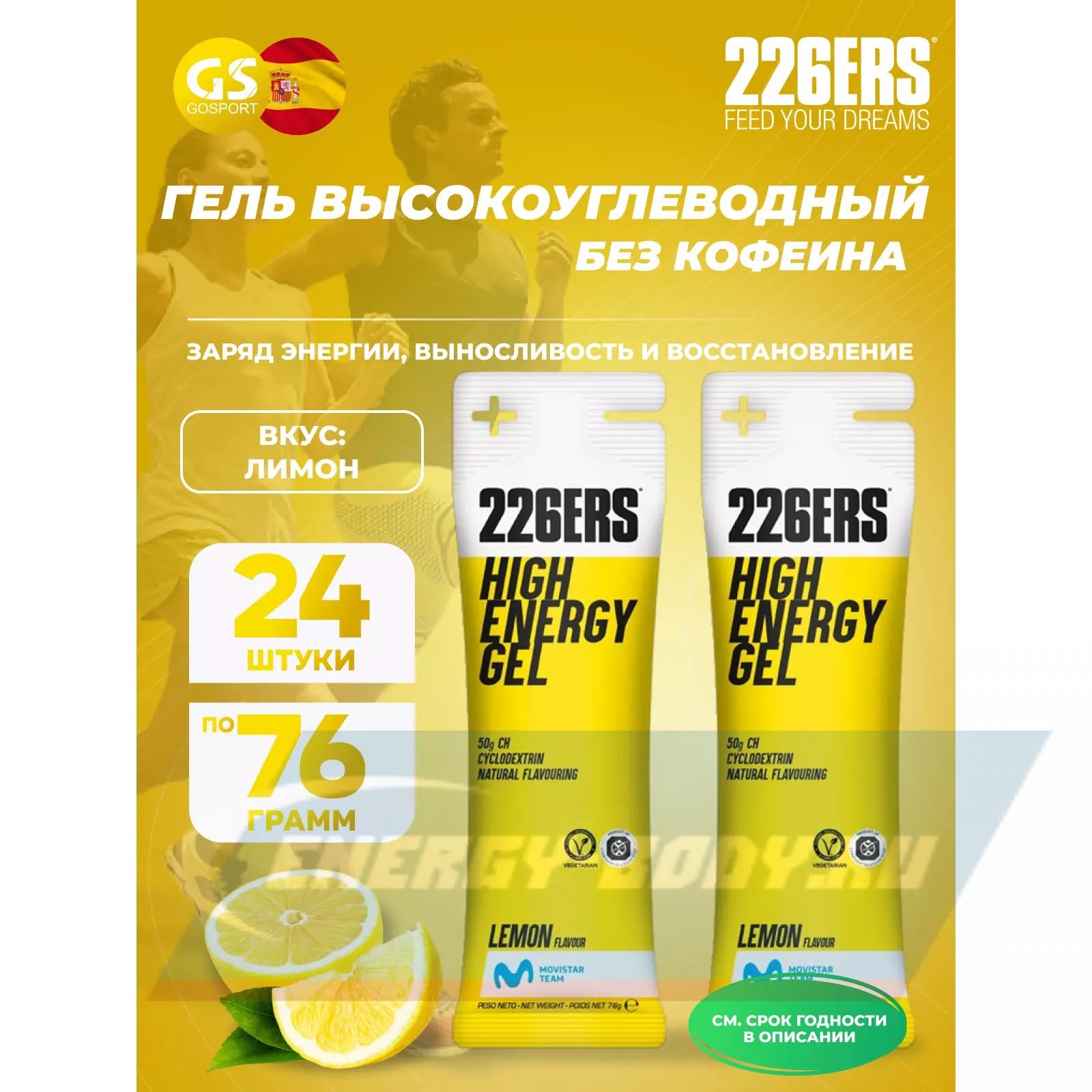 226ERS High Energy Gel 24 x 76 г, Лимонад — Заряд энергии и повышение выносливости